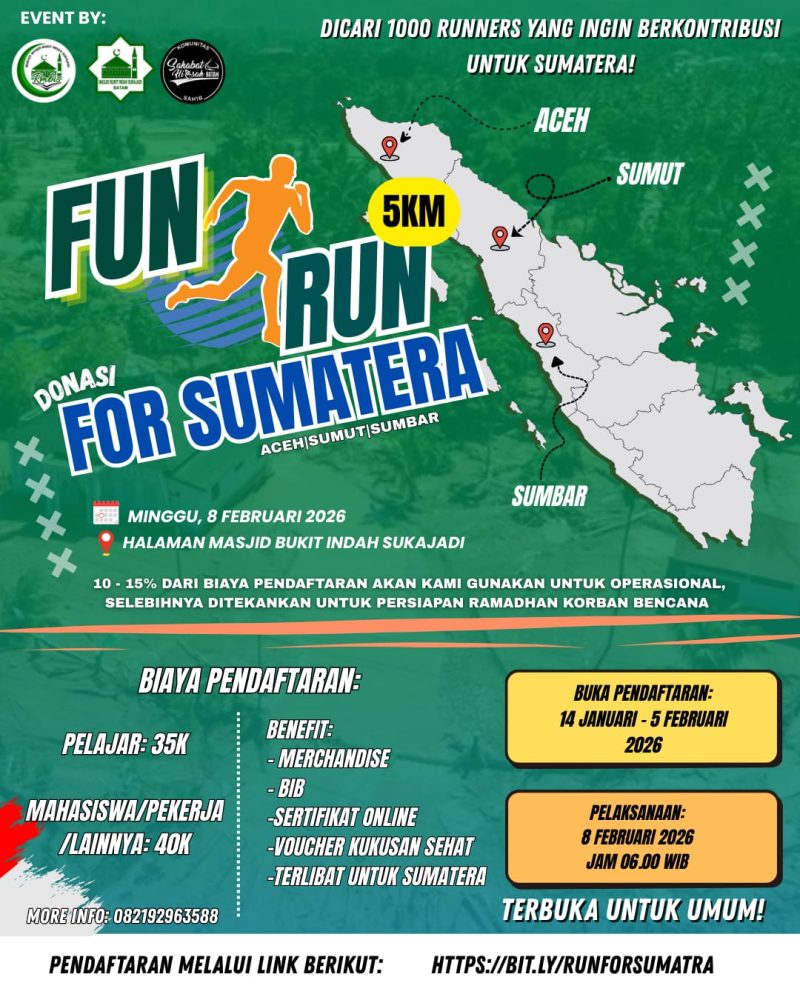 Dengan konsep fun, sehat, dan penuh makna, Fun Run for Sumatra diharapkan menjadi ajang inspiratif yang menggabungkan gaya hidup sehat dengan aksi kebaikan.